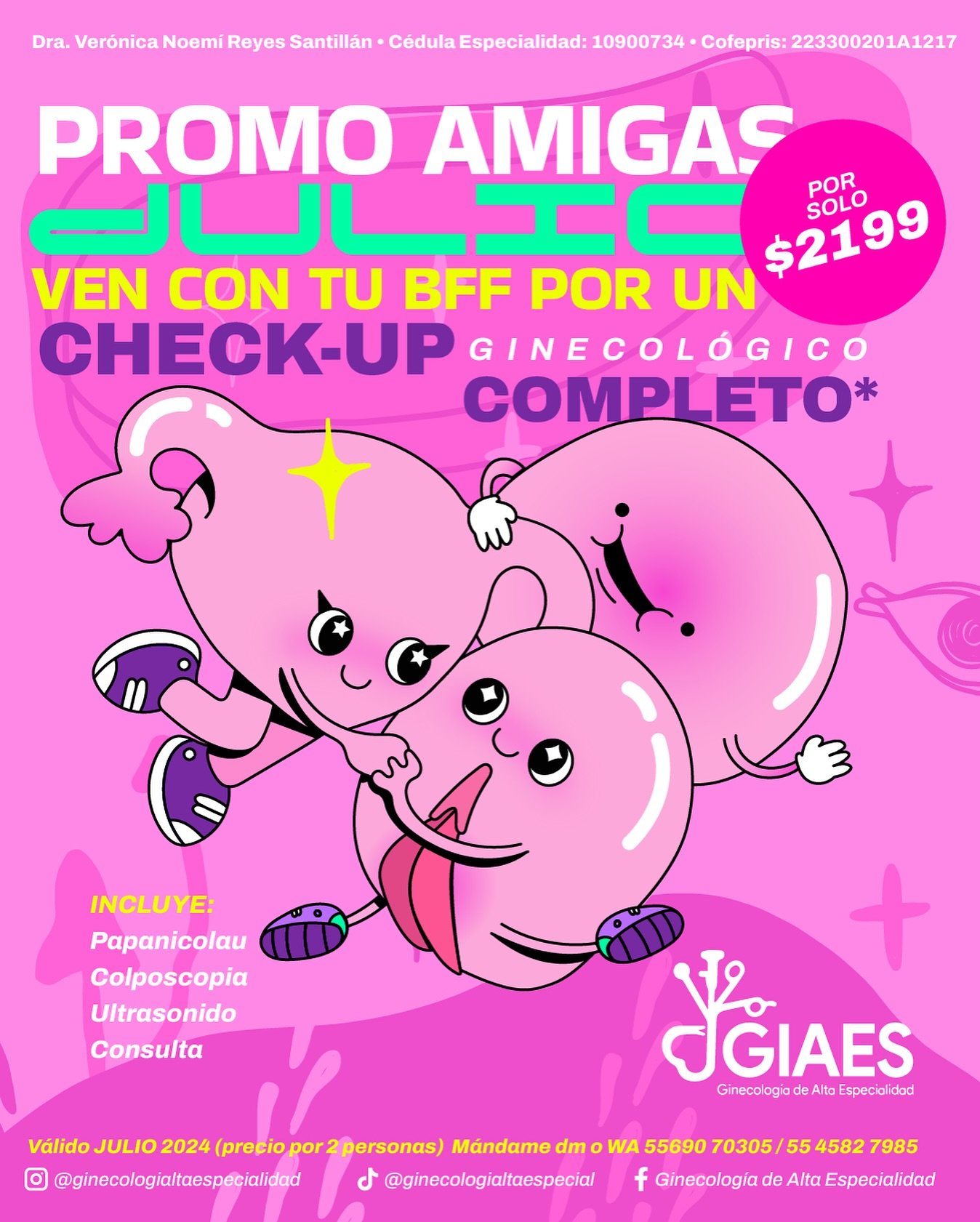 Para dos personas: Ven con tu mejor amiga, prima, mamá, tía, cuñada, conocida, con quien quieras por un Check-up completo que incluye: papanicolau, colposcopia, ultrasonido y consulta. 👯♀️